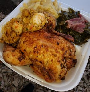 Our lamb is marinated for 24 hours in our Miss Millie's Kitchen spices and sauces. Seared with butter and rosemary. Crab legs our cooked in crab boil butter seasonings. Comes with our loaded shrimp potatoe and corn on the cob.